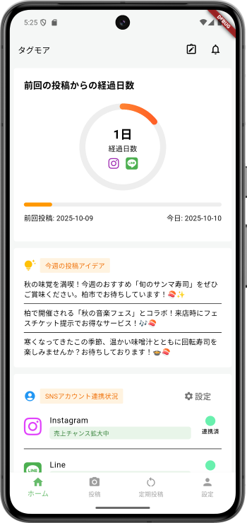 AIが業種や季節に合わせて投稿テーマを提案。ネタ切れ知らずです。
